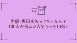 「呪術廻戦」の声優 【呪術廻戦 夜蛾正道役】声優・黒田崇矢の人気アニメキャラ10選!プロフィールや経歴まで徹底解説 声優・黒田崇矢さんの基本プロフィールや経歴、そして彼の魅力を徹底深堀り。さらに100人が選んだ「黒田崇矢が演じたキャラクター10選」もご紹介しています。 2025.10.04 「呪術廻戦」の声優