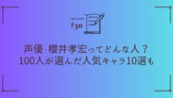 「呪術廻戦」の声優 【呪術廻戦 夏油傑役】声優・櫻井孝宏の人気アニメキャラ10選!プロフィールや経歴まで徹底解説 声優・櫻井孝宏さんの基本プロフィールや経歴、そして彼の魅力を徹底深堀り。さらに100人が選んだ「櫻井孝宏が演じたキャラクター10選」もご紹介しています。 2025.11.09 「呪術廻戦」の声優